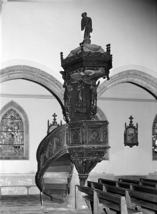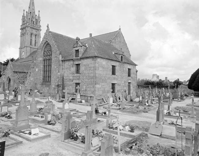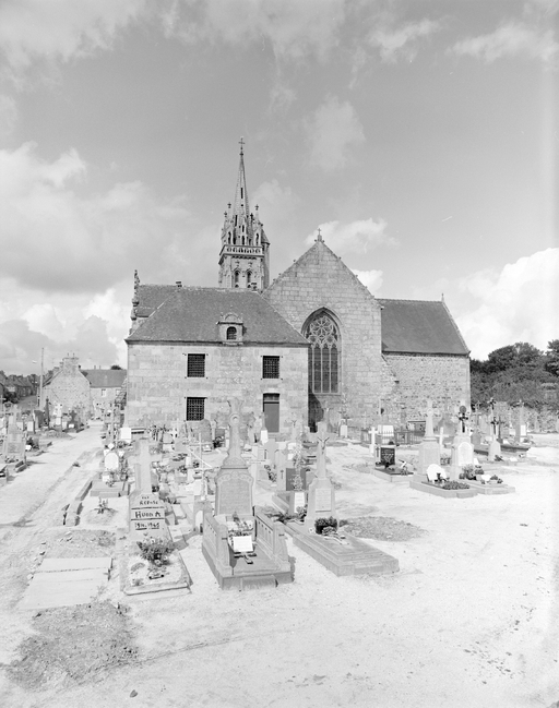 Transept sud et mur gouttereau sud début 16e ; sacristie en 1637 ; réfections en 1712, 1725 par Yves Couly ; reconstruction partielle en 1847 ; tour ouest en 1906 sur plans de C.G. Lageat.