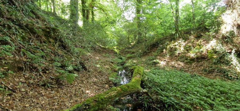 Le fossé est partiellement en eau, il mesure environ 12 m de largeur.