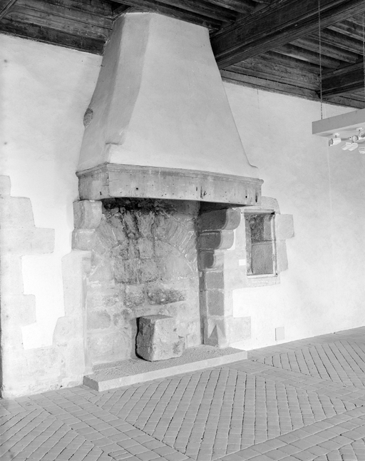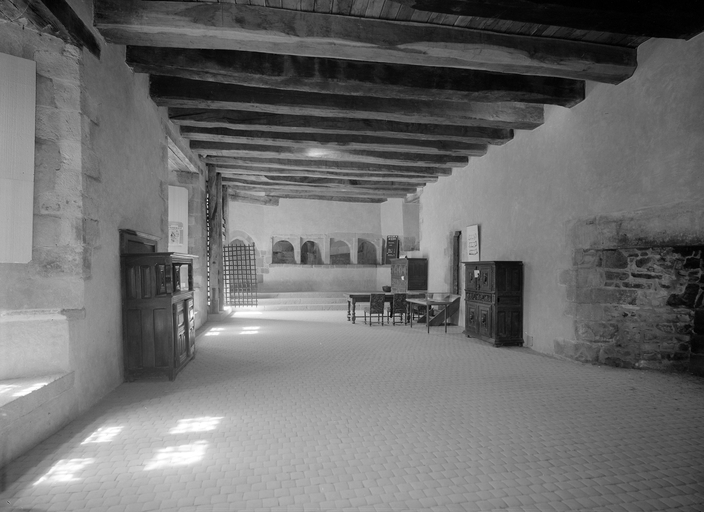 L’entrée se fait directement dans la salle basse. Elle est éclairée côté cour par deux grandes fenêtres à croisée et chauffée par une cheminée implantée dans le mur gouttereau postérieur. Située presque face à l’entrée, dans l’épaisseur du mur postérieure, se trouve une pièce chauffée dont l’usage n’est pas identifié (corps de garde, "bureau" de l’intendant ?)
