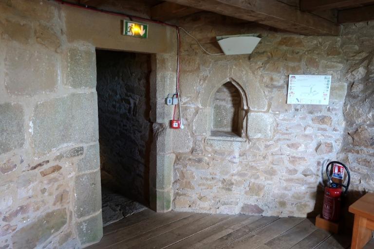 Sous les toits côté Trieux, juste au-dessus du chemin de ronde et accessible par un couloir depuis l’escalier principal, le logement du chapelain dispose d’une armoire en arc brisé et d’un placard mural avec gaine de chauffage depuis la cheminée. Ce logement à deux pièces, couverte en poivrière pour l’une, en pavillon pour l’autre, est en pan de bois.