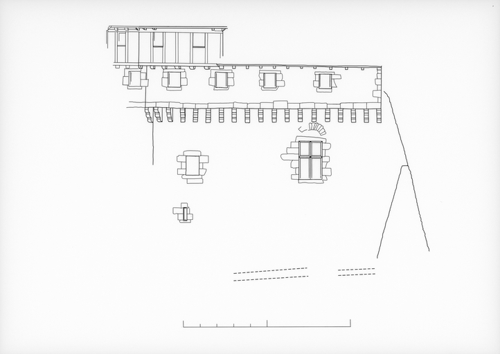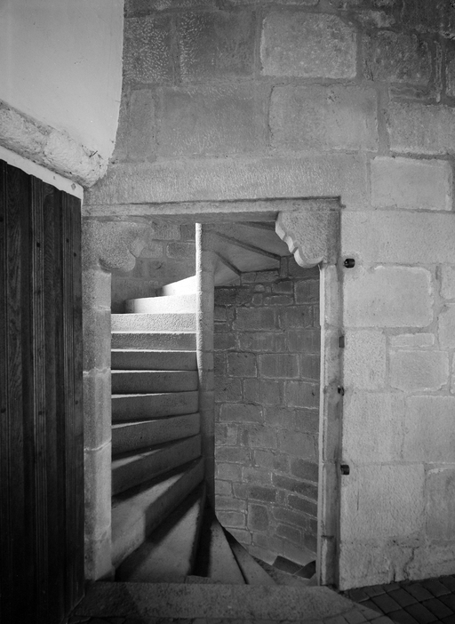 Un second escalier en vis est implanté dans œuvre au sud du corps principal dans l’épaisseur du mur de refend et du mur gouttereau.