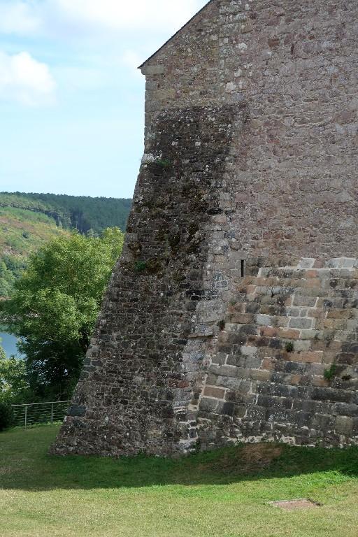 Le chemin de ronde court sur la quasi-totalité de la façade coté Trieux : il est doté d’un corps de garde chauffé et de latrines. L’absence de liaisonnement dans la maçonnerie correspondant au chemin de ronde est particulièrement visible depuis le nord. Puisque les poteaux de la charpente du chemin de ronde sont datés du début 15e siècle par dendrochronologie, ne s’agissait-il pas à l’origine d’un chemin de ronde en pan de bois à l’image de la coursière en encorbellement côté cour ?