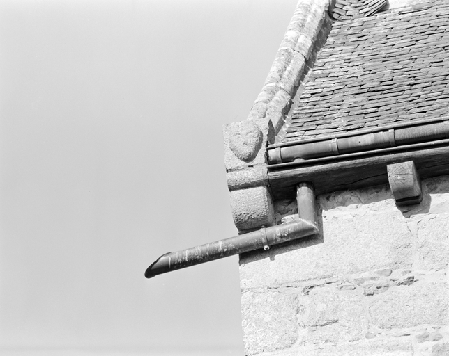 Côté cour, les chevronnières ou crossettes sont sculptées (le seigneur au nord et sa dame au sud avec sa coiffe ?).