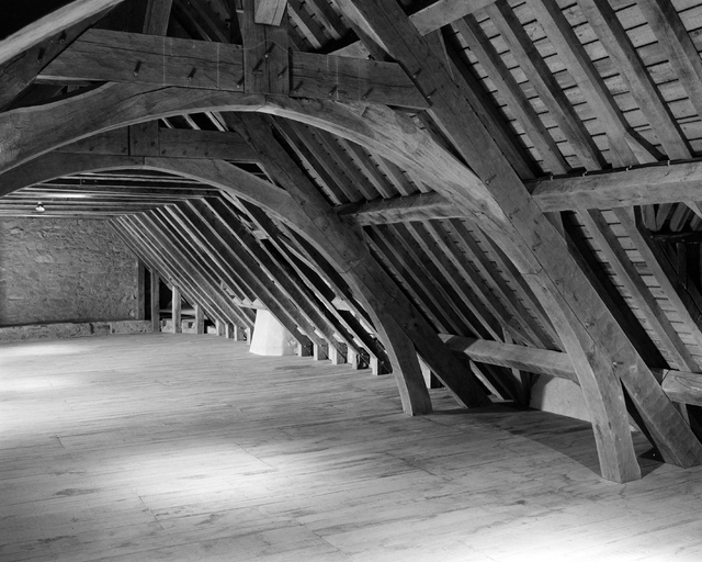 A l’exception de la chambre sud qui est doté d’un plafond, les trois pièces en enfilade - chambre nord-ouest, salle haute nord et salle haute sud - sont sous charpente. La charpente de la chambre nord-ouest conserve ses aisseliers d’origine (date d’abattage entre 1406 et 1410 par dendrochronologie).