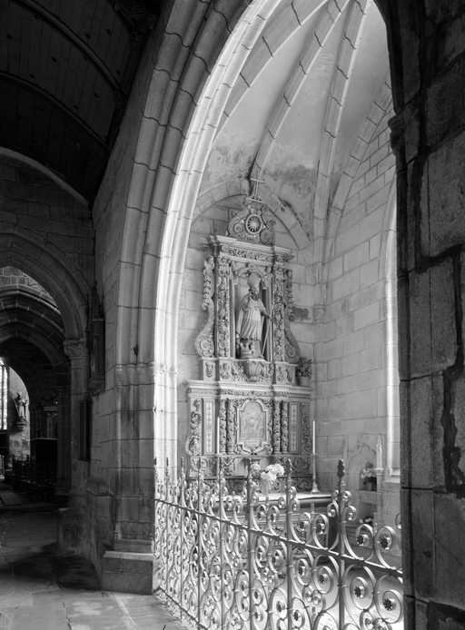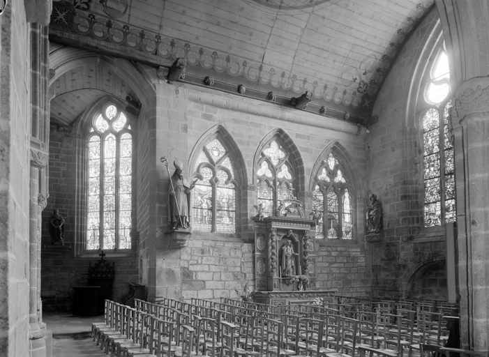 Enfin, dans le deuxième quart du 16e siècle, un autre membre de la famille, Alain II de Rosmadec (1509-1560), qui épouse en 1528 Jeanne du Chastel, poursuit l´œuvre de ses devanciers : ils amplifient encore vers l´est le choeur et son premier bas-côté par un chevet à trois pans, portant la longueur totale de l´édifice à 52 m. Plusieurs fenestrages du côté sud sont également refaits dans le second quart du 16e siècle. À l´époque classique, on élève une nouvelle sacristie, à l´aisselle du collatéral sud du chœur et de la grande chapelle, on élargit les baies du bas-côté nord du choeur, on modernise la façade ouest et on surélève le comble.