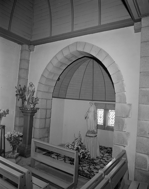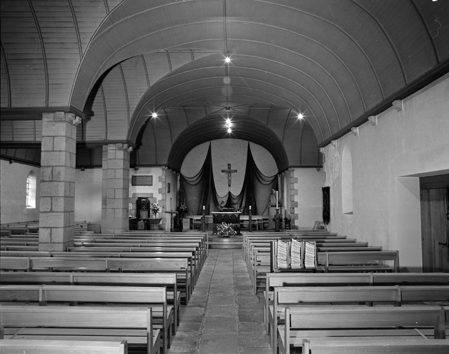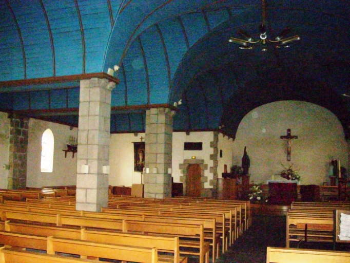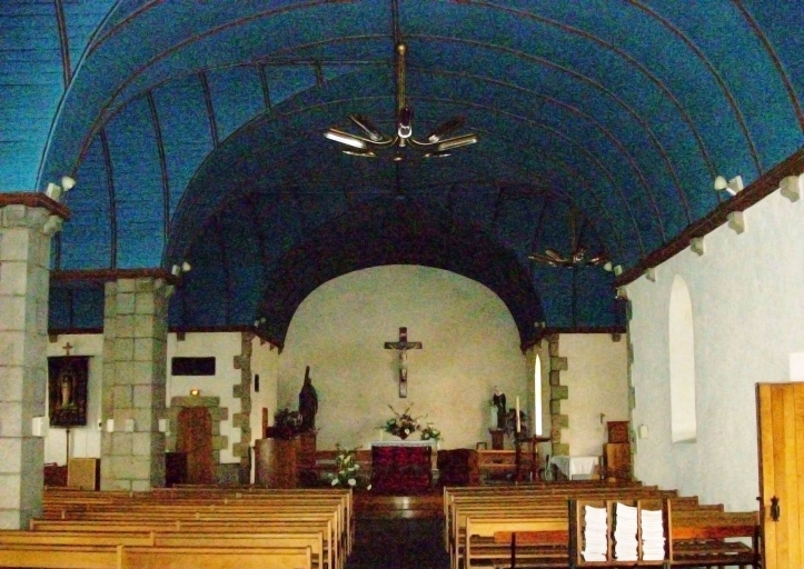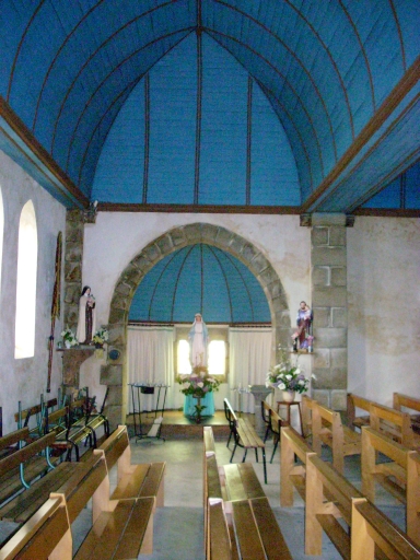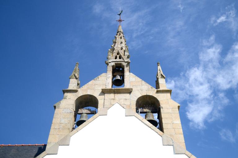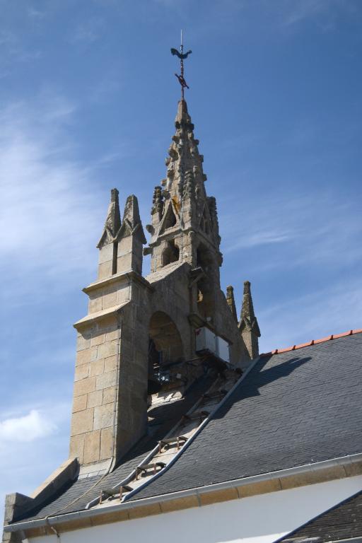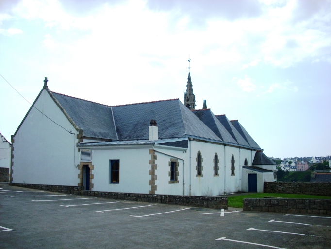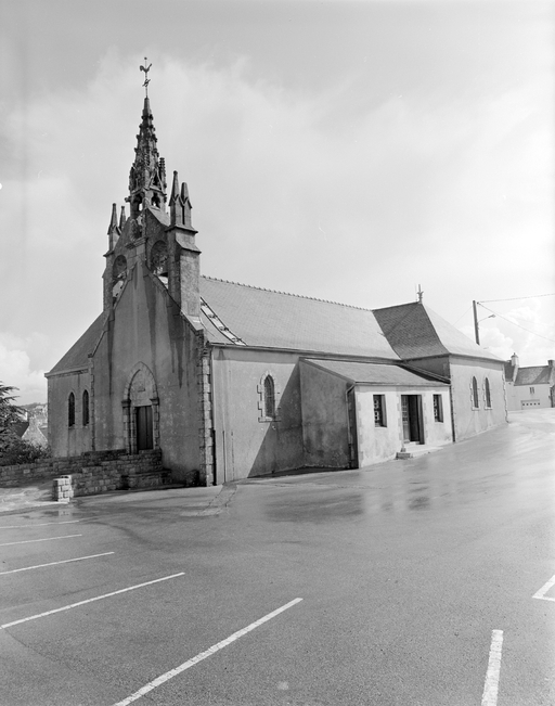 Chapelle antérieure portant l' inscription : 1681 M H LOUARN F, en ruines à la Révolution ; édifice actuel construit en 1885 d'après les plans du chanoine Jean-Marie Abgrall ; bas-côté nord ajouté en 1929 lors de l' érection en paroisse, clocher provenant de l' ancienne chapelle du 17e siècle.