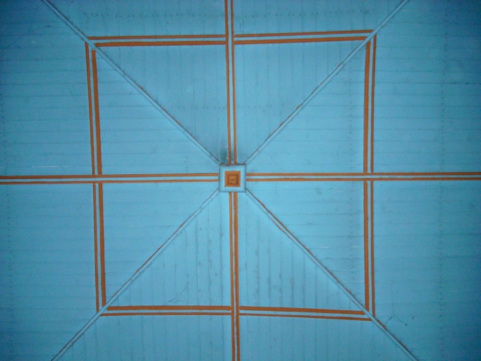 Son sol est constitué de dalles de granite et son plafond couvert de lambris peint en bleu.