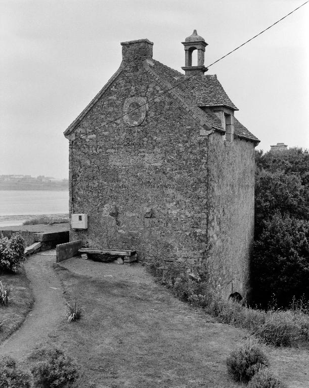 Les constructeurs semblent avoir remployé des éléments d'une chapelle : celle de Kersabiec ou celle de Pont-Christ, puisqu'on retrouve dans l'escalier extérieur du restaurant attenant - "l'auberge de Kersabiec" - une pierre portant un calice, un missel et la mention : Monsieur Yves CADOUR P. 1695, un nom que l'on trouve sur les remplois dans la ferme de Pont-Christ.