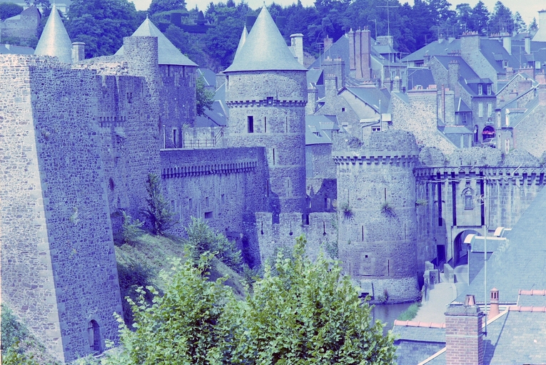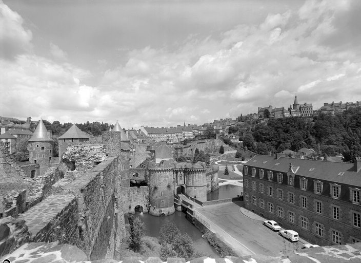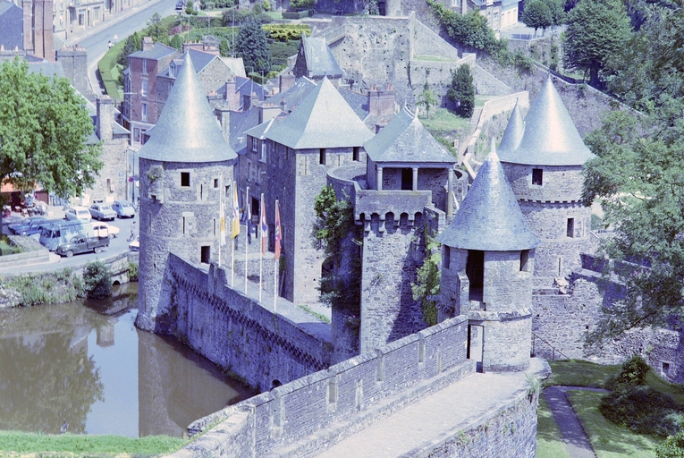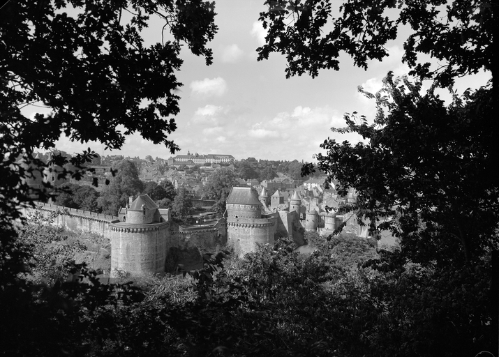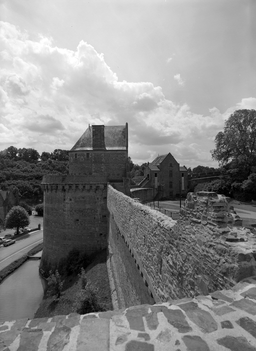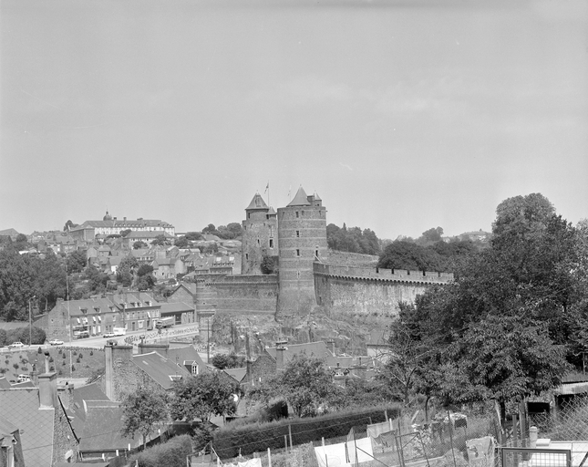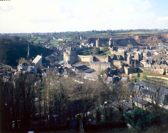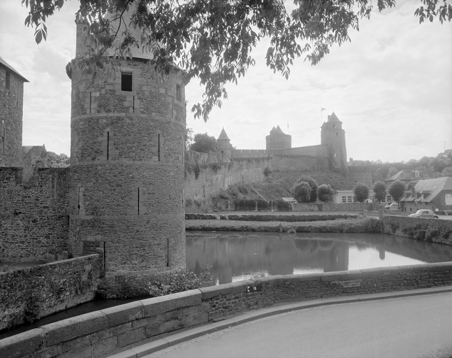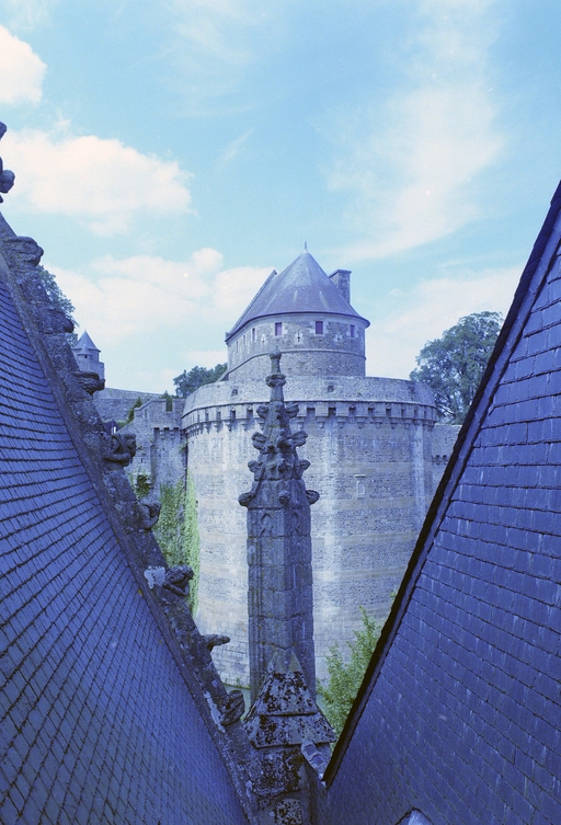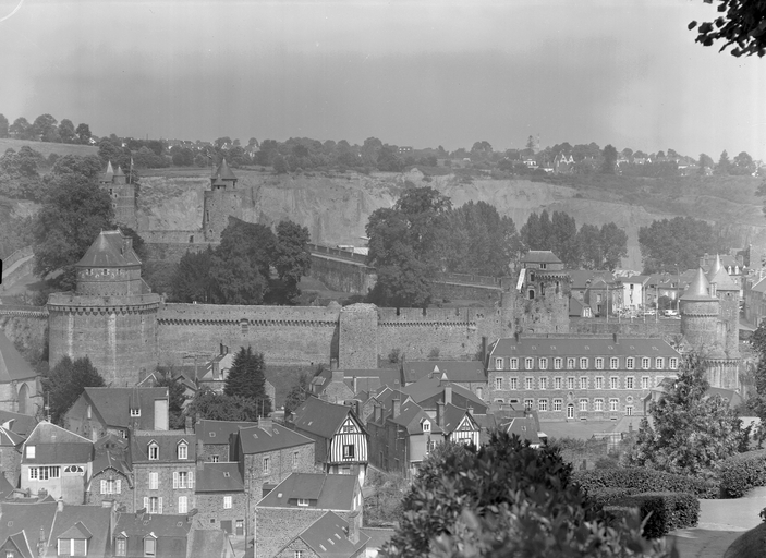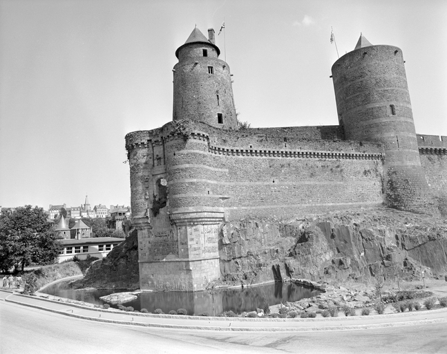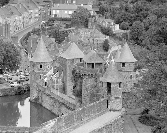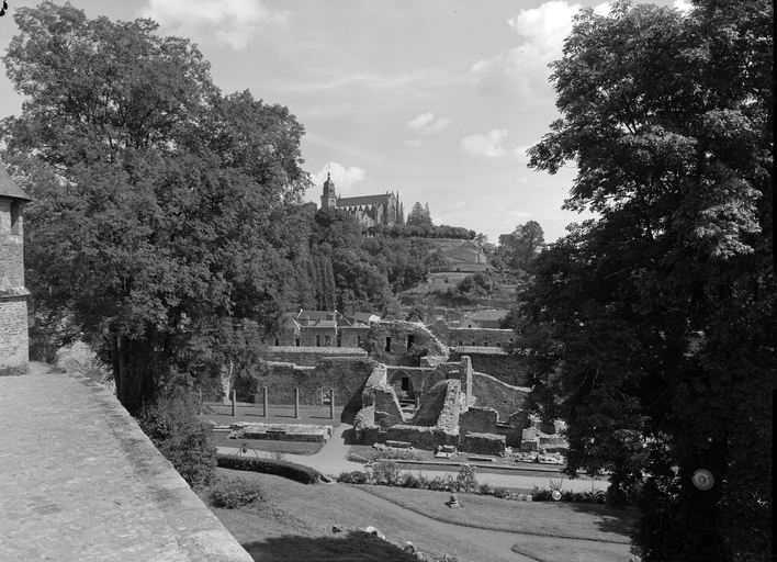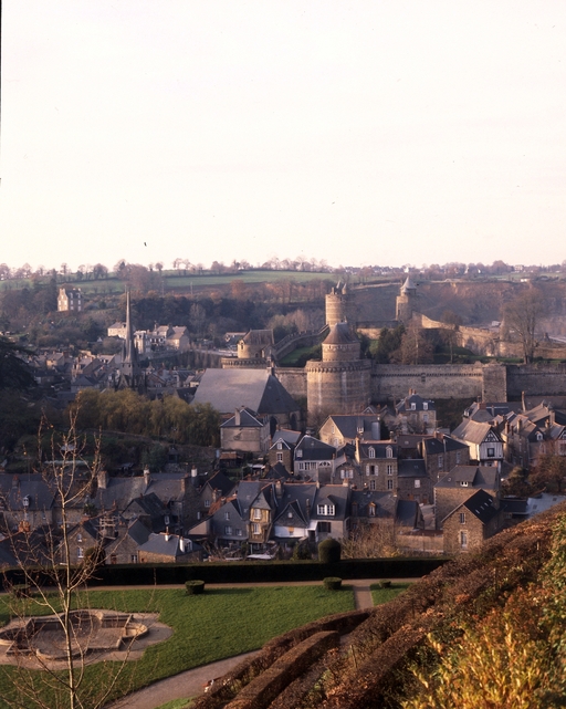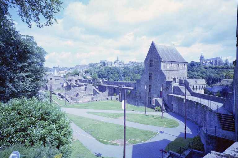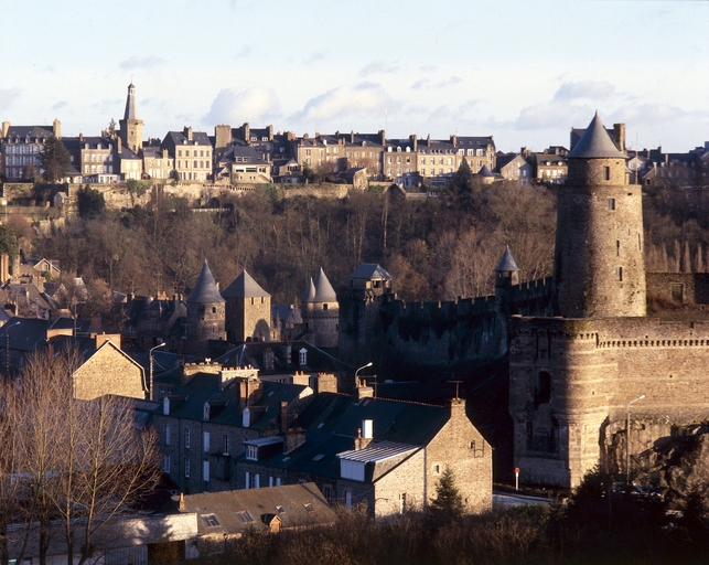 Château antérieur ruiné en 1166 ; reconstruit vers 1173 pour Raoul II (tours d'entrée, tour de Coigny) ; tour Mélusine 14e siècle ; tour du Gobelin remaniée 14e siècle ; tours d'Amboise 1ère moitié 15e siècle pour Pierre II ; tours Raoul et Surienne entre 1480 et 1485 ; logis 14e siècle détruit vers 1810, 1820 ; inscriptions modernes ; marques de tâcheron sur les tours Raoul et Surienne.