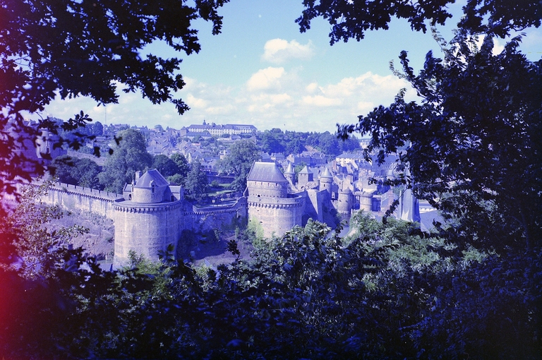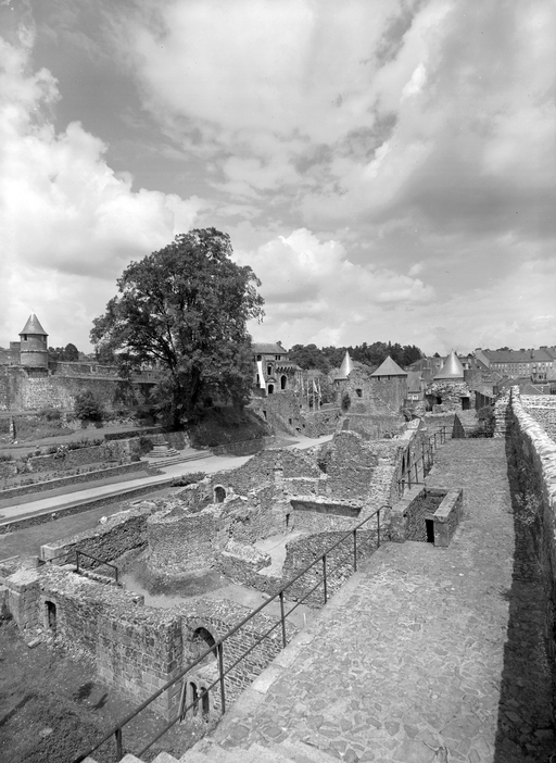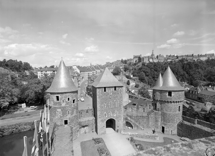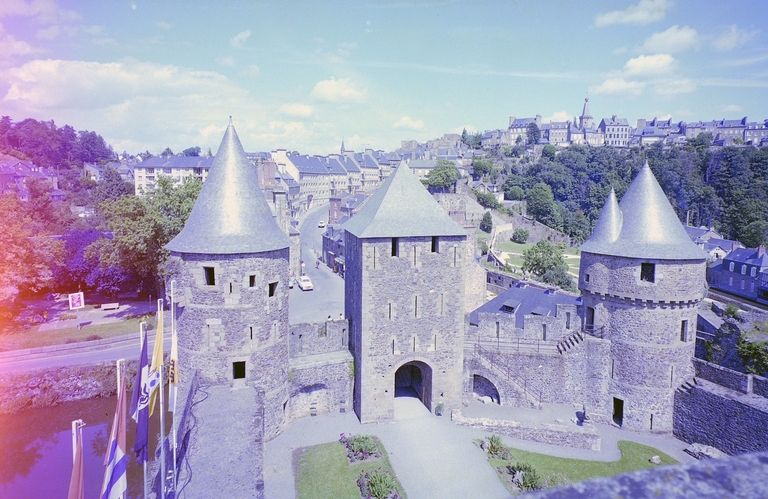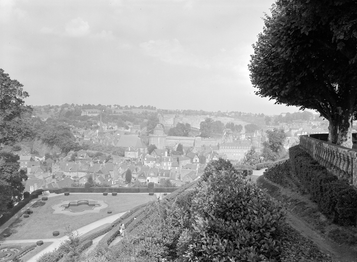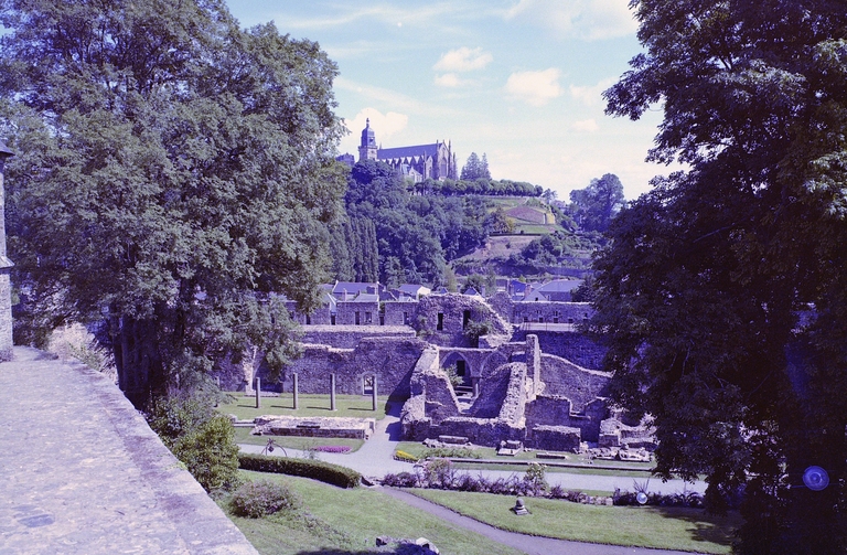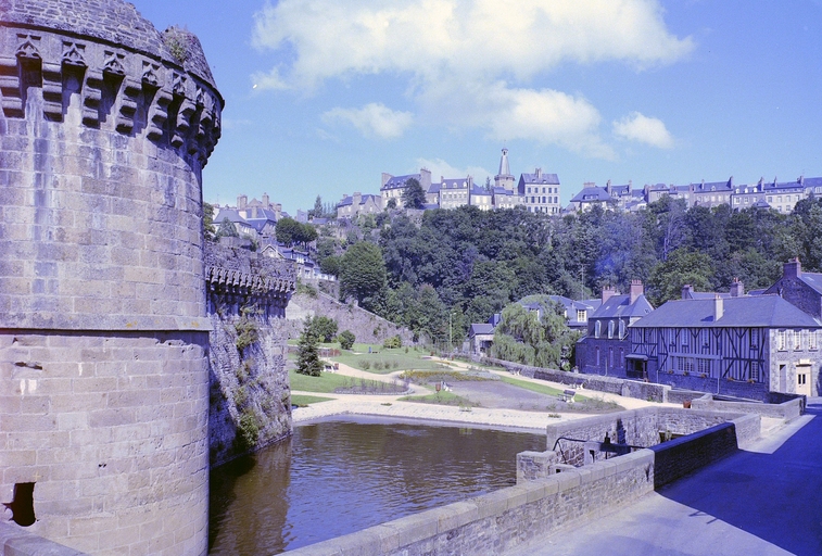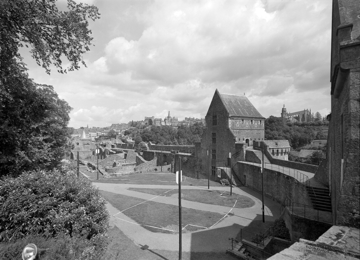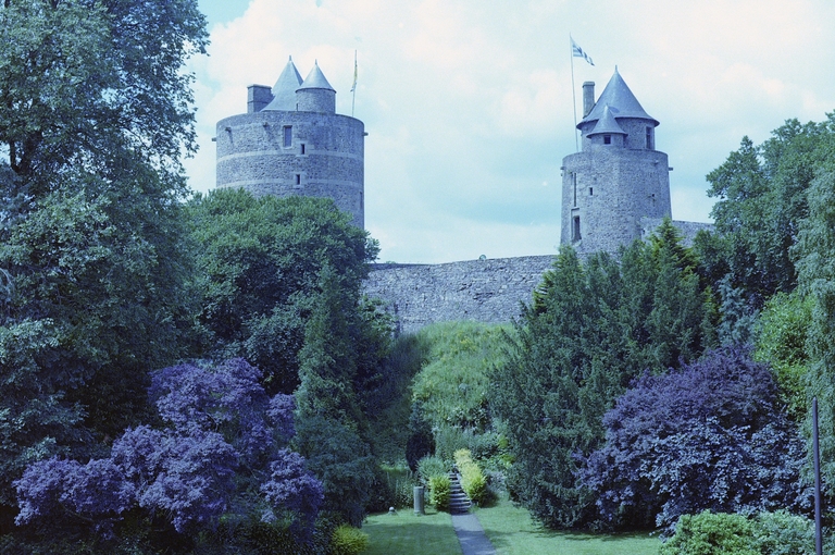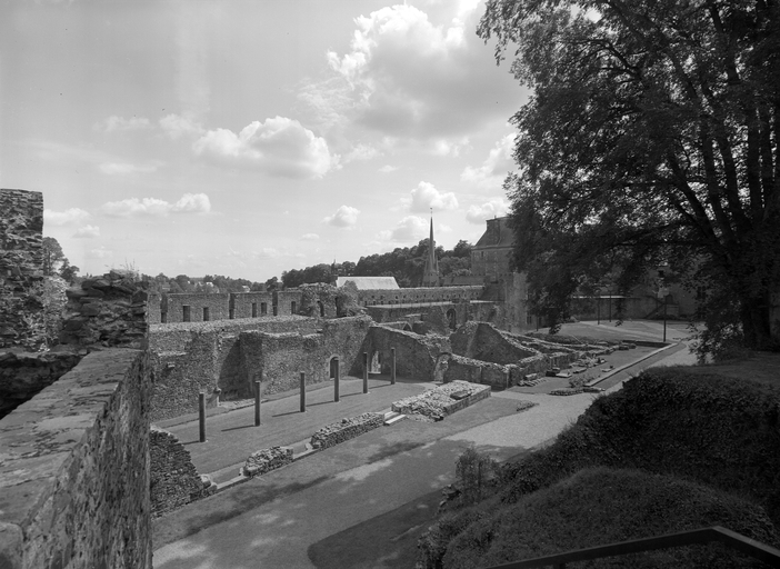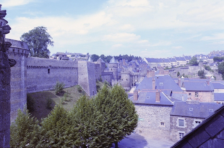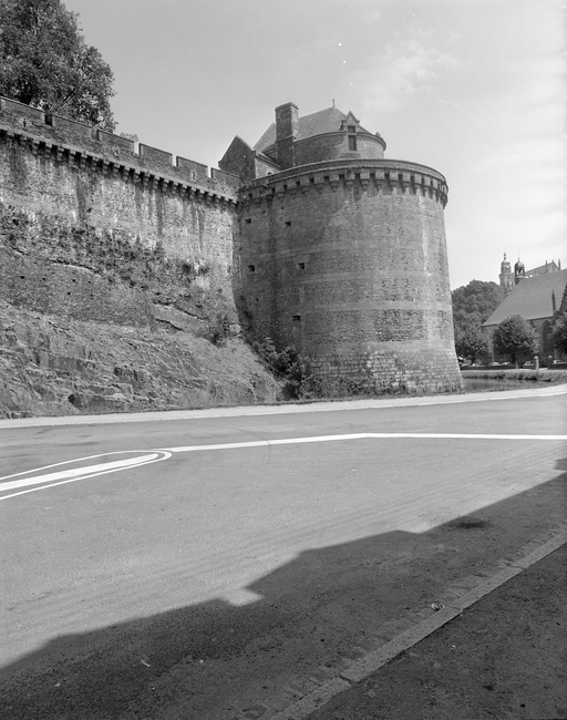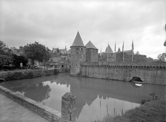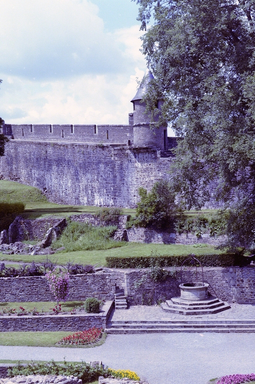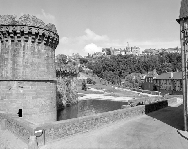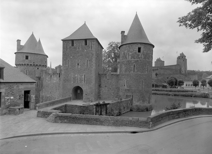 Château antérieur ruiné en 1166 ; reconstruit vers 1173 pour Raoul II (tours d'entrée, tour de Coigny) ; tour Mélusine 14e siècle ; tour du Gobelin remaniée 14e siècle ; tours d'Amboise 1ère moitié 15e siècle pour Pierre II ; tours Raoul et Surienne entre 1480 et 1485 ; logis 14e siècle détruit vers 1810, 1820 ; inscriptions modernes ; marques de tâcheron sur les tours Raoul et Surienne.