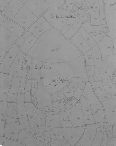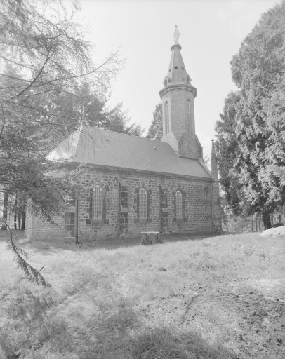 Une 1ère chapelle dédiée à la Vierge est construite entre 1696 et 1698 par Jean Royer et sa femme. Endommagée à la Révolution elle sera reconstruite vers 1825 (datés par travaux historiques), puis de nouveau en 1877 (porte la date) à l'initiative du vicaire de la paroisse, l'abbé Le Mesle.