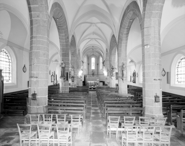 L'ancien chevet de l'église comportait trois absides romanes, détruites en 1860. La nef de la 2e moitié du 16e siècle conserve en remploi au sud une porte et une fenêtre du 15e siècle. Le choeur actuel est vraisemblablement contemporain de la tour du clocher élevée en 1869.