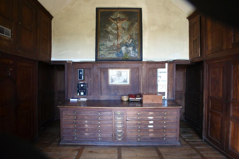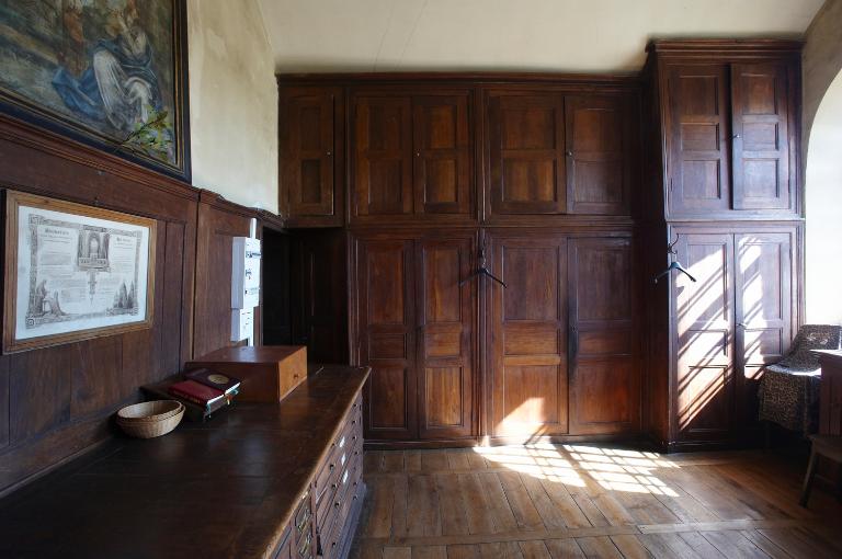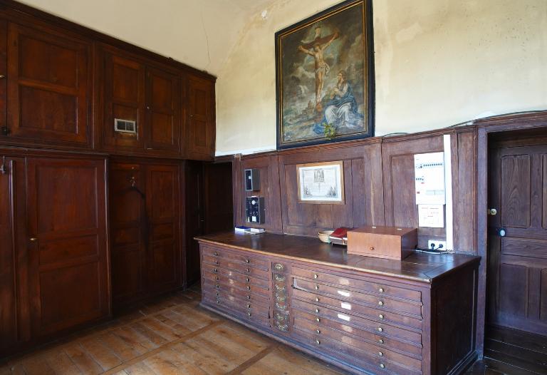 Les façades nord et sud possèdent trois pignons chacun. Le pignon central possède une porte surmontée d'une fenêtre. Les pignons latéraux ne possèdent qu'une fenêtre chacun. Ces fenêtres sont toutes trilobées et leurs pierres sont chanfreinées. Leurs vitraux colorés sont ornés de motifs végétaux et géométriques, ils sont protégés par des grilles. La porte du pignon central de la façade sud dispose d'une moulure complexe caractéristique de la fin du 15e siècle. Il s'agit certainement d'un remploi provenant de l'église avant rénovation, de même pour les fenêtres trilobées.