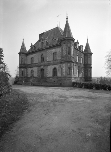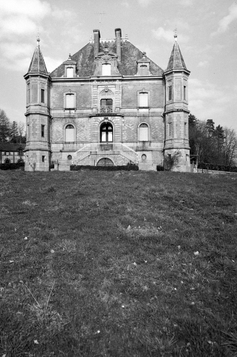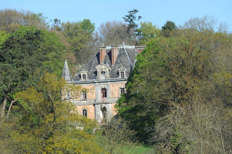 C'est un petit édifice composé d'un corps de logis carré cantonné de tourelles octogonales, et couvert d'un toit en pavillon à terrasse faîtière. Il s'élève sur cinq niveaux, obéissant à une stricte répartition fonctionnelle, habituelle des châteaux de cette époque : le niveau de soubassement est réservé à la cuisine, aux pièces de service et aux caves, et s'ouvre de plain pied sur deux cours situées à l'est et à l'ouest ; le rez-de-chaussée, dévolu aux pièces de réception, voit, du fait de l'adossement du château à une terrasse, son entrée nord accessible en rez-de-cour, alors que l'entrée sud, s'ouvrant sur le parc situé en contrebas, est positionnée très en hauteur par rapport au sol et précédée d'un perron à deux volées convergentes ; l'étage carré et le premier étage de comble sont réservés aux chambres ; enfin, le dernier niveau est occupé par un grenier, d'où l'on peut accéder, par un petit escalier, à la terrasse du toit. Les élévations sont animées de trois travées régulières, la travée centrale des façades antérieure et postérieure bénéficiant d'un traitement décoratif plus marqué. La maçonnerie est enduite (le faux appareil losangé, visible sur une carte postale ancienne, existait encore partiellement dans les années 1970), le soubassement, le bandeau du premier étage, la corniche, les encadrements de baies et les chaînes d'angle sont en pierre de taille de granite, les frontons des lucarnes sont en calcaire. L'enduit extérieur et la couverture sont en très mauvais état. Deux bâtiments de dépendances côtoient le château, dont un construit entièrement en bois. Ces bâtiments sont également en mauvais état. Quant au parc, il conserve quelques beaux arbres et le tracé de ses allées.