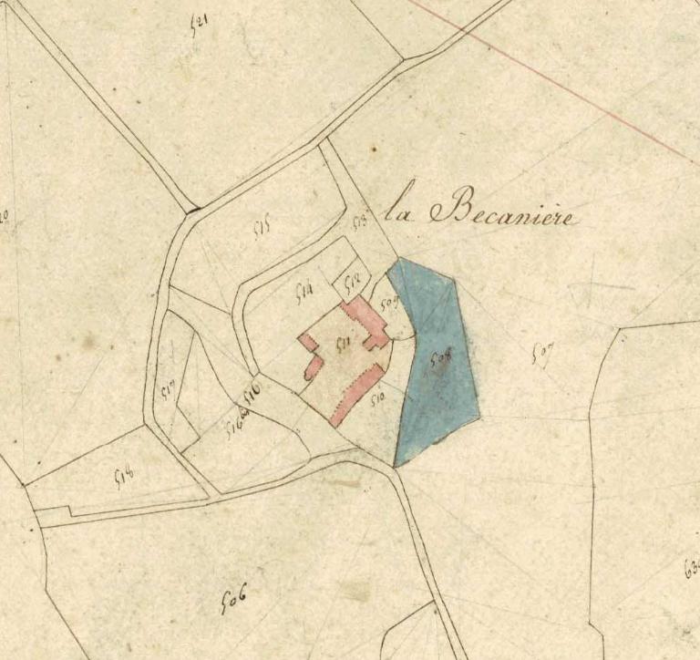 Le bâtiment actuel, en particulier la distribution interne, correspond encore tout à fait à la description de 1794. En revanche, tous les bâtiments annexes cités ont disparu ainsi que le mur de clôture. Au 18e siècle, le château de la Bécanière était entouré de communs,