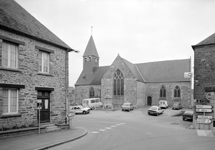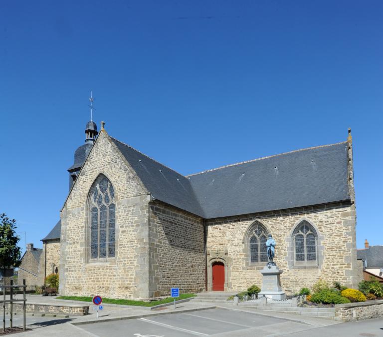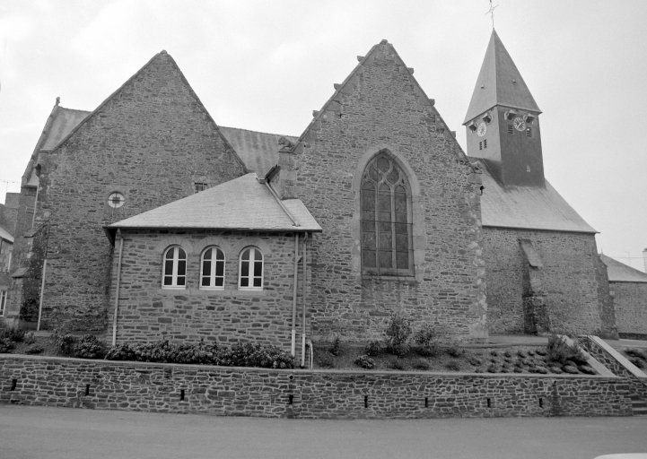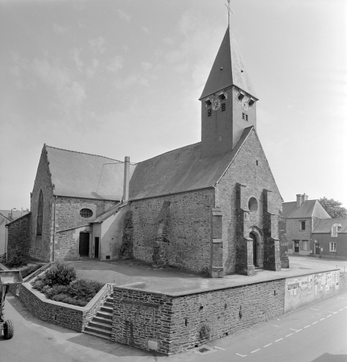 A l'origine priorale, l'église dépendait de l'abbaye Saint-Georges de Rennes. Elle remonte pour sa partie la plus ancienne au 15e siècle (vestiges dans le massif occidental) . En majeure partie du 16e siècle (chapelle nord datée 1556), elle a été modifiée au 17e siècle : en 1629 l'ancienne chapelle seigneuriale située au nord du choeur est transformée en sacristie, puis en 1641 la chapelle sud est reprise en réemployant la porte du 16e siècle. La façade occidentale a également été reprise en 1777 (porte la date). Des remaniements de détails sont également à signaler au 19e siècle.