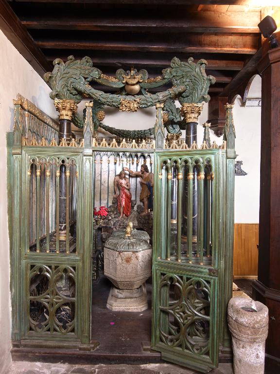 - Baldaquin et couvercle des fonts baptismaux (18e siècle); classement MH 1919.
