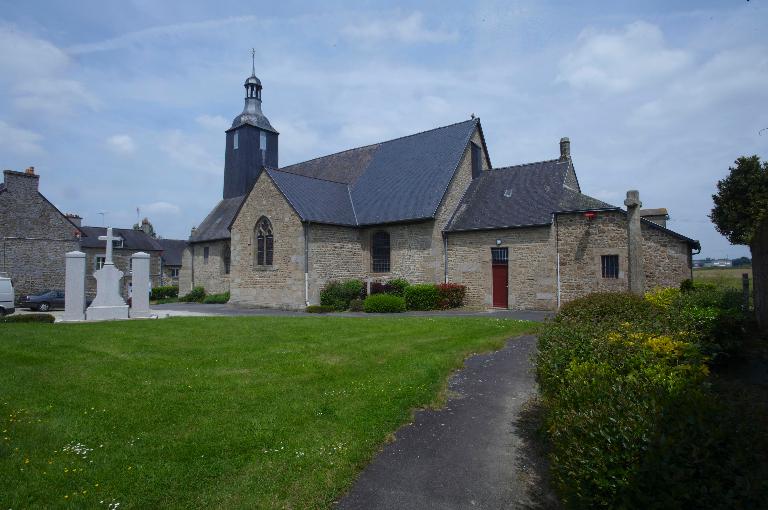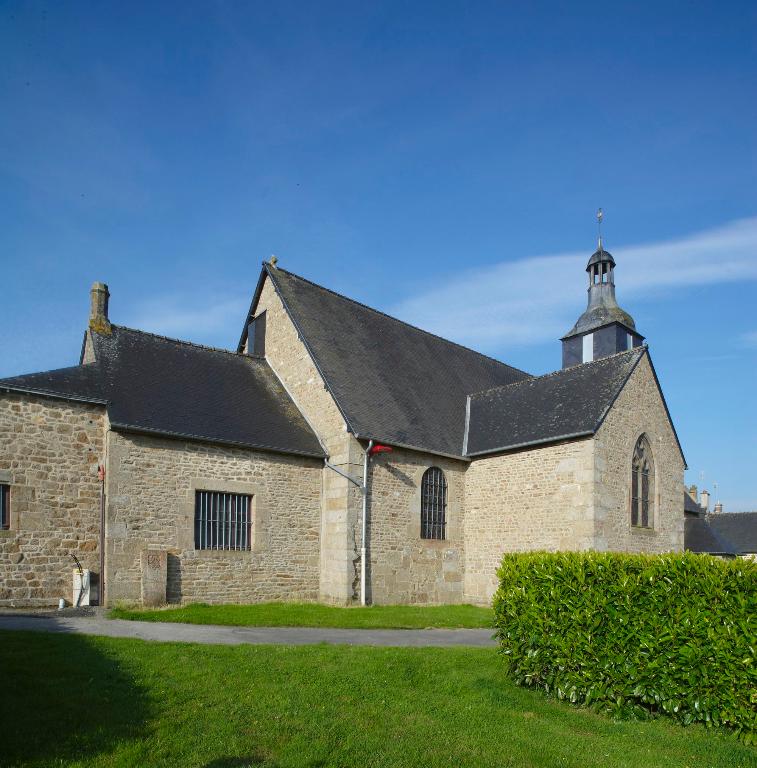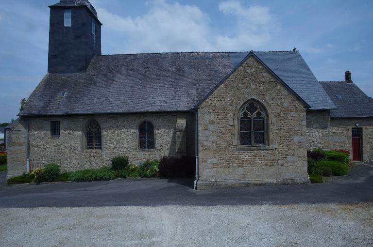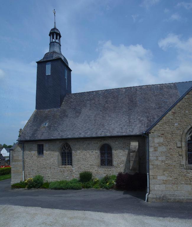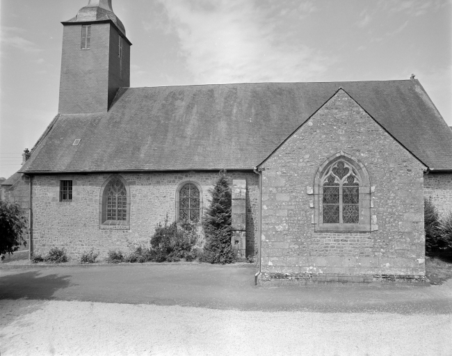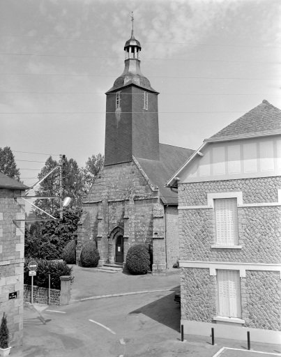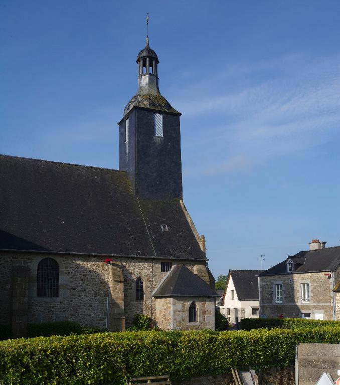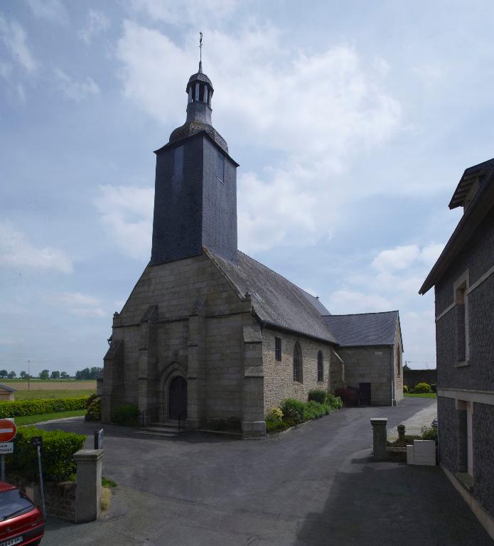 Eglise priorale mentionnée au 12e siècle, appartenant à l'abbaye Saint-Pierre-de-Rillé, conserve des vestiges d'appareil roman dans la nef. L'édifice actuel date du 15e siècle (massif occidental) et du 16e siècle (transept) . Il a été en partie remanié en 1826 (clocher) et en 1833 (transept et choeur) avec remploi de baies. Inscription bras sud du transept : J. DUROCHER CURE PR PRL 1833.