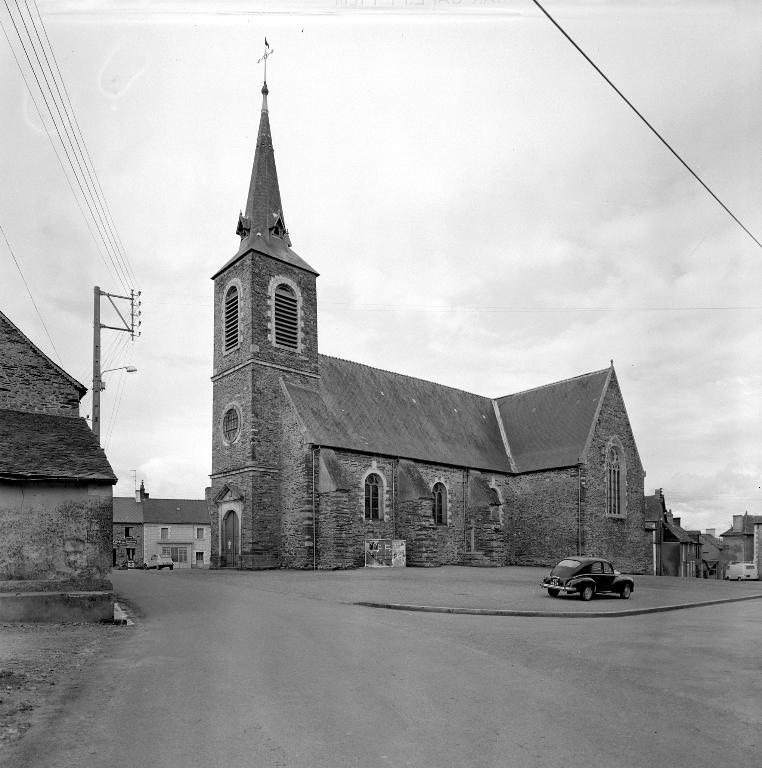 Ce n'est qu'à partir de la seconde moitié du 19e siècle que l'église prend sa forme actuelle. Monsieur Charles de la Bourdonnaye et Mademoiselle Marie Charlotte de la Bourdonnaye participent au financement des travaux qui se déroulent de 1850 à 1853. Ceux-ci ont été orchestrés par l'architecte Anger de la Loriais. Un transept saillant a été ajouté à l'édifice, ce qui a permis de dessiner un plan en croix latine. Le chœur est reculé de quelques mètres et il est doté de deux chapelles latérales. On remplace également le clocher qui se trouve alors en bas de la nef actuelle. En remerciement à leur don Monsieur et Mademoiselle de la Bourdonnaye ont été inhumés dans l'église dont il reste deux stalles dans les bras du transept.