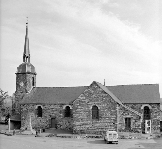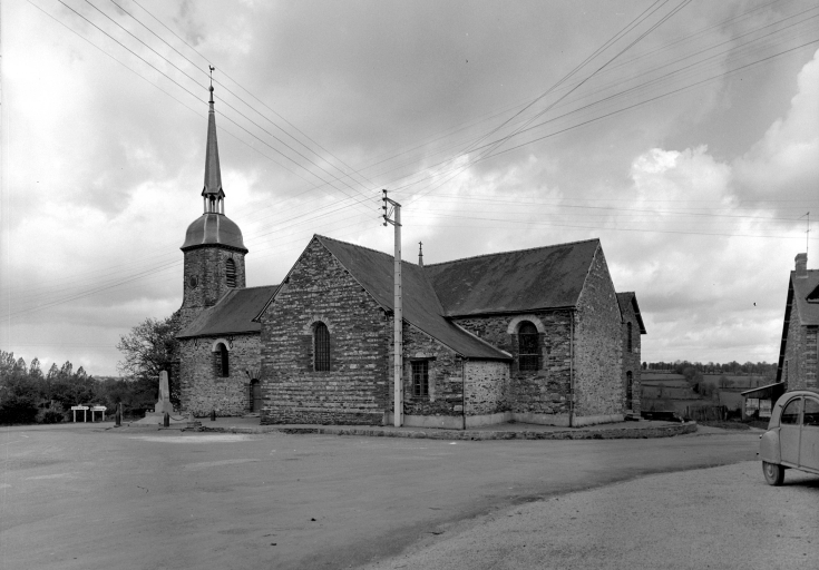 Ancienne église priorale dépendant de l'abbaye Notre-Dame de Paimpont du 16e siècle ou 17e siècle, remaniée au 18e siècle (étage supérieur de la tour) et en 1848 (baies et flèche polygonale) .