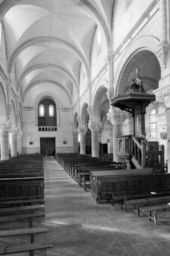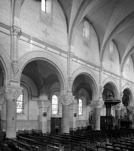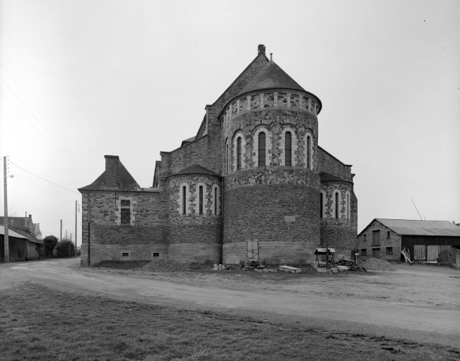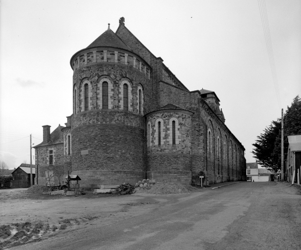 L'édifice antérieur dépendait de l'abbaye Saint-Sauveur-de-Redon. Sa nef datait du 12e siècle, les bas-côtés, le chœur et les chapelles latérales étaient du 15e ou du 16e siècle. Il fut remanié à la fin du 18e siècle et détruit vers 1890. L'église actuelle a été construite plus au sud à partir de 1885 (pose de la première pierre) par Henri Mellet et terminée vers 1894. Les verrières datées 1890 sont l'œuvre de l'atelier Meuret de Nantes.