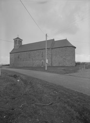 Typologieschevet arrondi ; campanile en façade ; style néo-roman