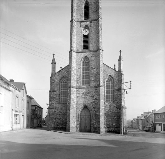 L'ancienne église citée dès le 13e siècle avait été reconstruite au 15e siècle. Sur son emplacement, Edouard Brossais-Saint-Marc construit une nouvelle église de 1854 à 1865. Le clocher est construit en 1869 par l'architecte Charles Langlois.