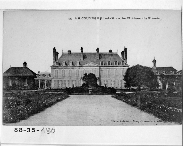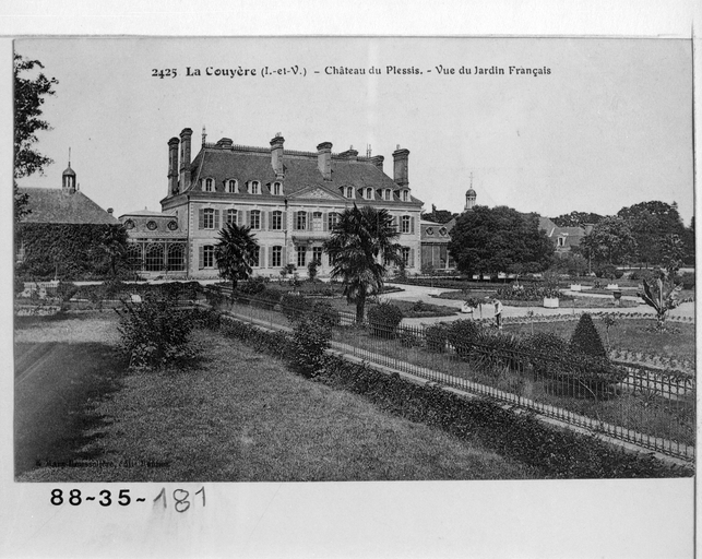 Château construit dans le 1er quart du 18e siècle par Gilles Gardin, directeur des monnaies de Rennes, sur le site ancien d'un manoir dont les vestiges subsistent encore aujourd'hui. Une description de 1744 indique l'existence du jardin, du parc et des étangs. Dans les années 1860-1870, le marquis de Langle entreprend d'importants travaux : il ajoute un jardin d'hiver contenant une rocaille et un bassin au château, le parc est redessiné par Choulot, architecte et deux bâtiments sont construits dans la propriété : un chenil et une ferme modèle à côté du potager recréé et de la roseraie. Cet ensemble de la fin du 19e siècle n'a subi aucune modification depuis sa création. Les travaux de la 2e moitié du 19e siècle concernent également les décors intérieurs et l'ornementation des façades (ajout de balcons de ferronnerie, de lucarnes, de souches de cheminée). Le parc est signalé comme remarquable par A. Orain à la fin du 19e siècle.