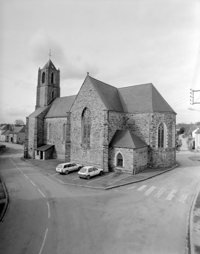 L'ancienne église possédait un arc triomphal, des fenêtres en meurtrières et avait un chevet arrondi vraisemblablement de l'époque romane. Elle était entourée d'une litre aux armes des Coëtquen, seigneurs de Poligné à la fin du 16e siècle. L'église actuelle a été reconstruite par Edouard Brossais Saint-Marc dans le 3e quart du 19e siècle.