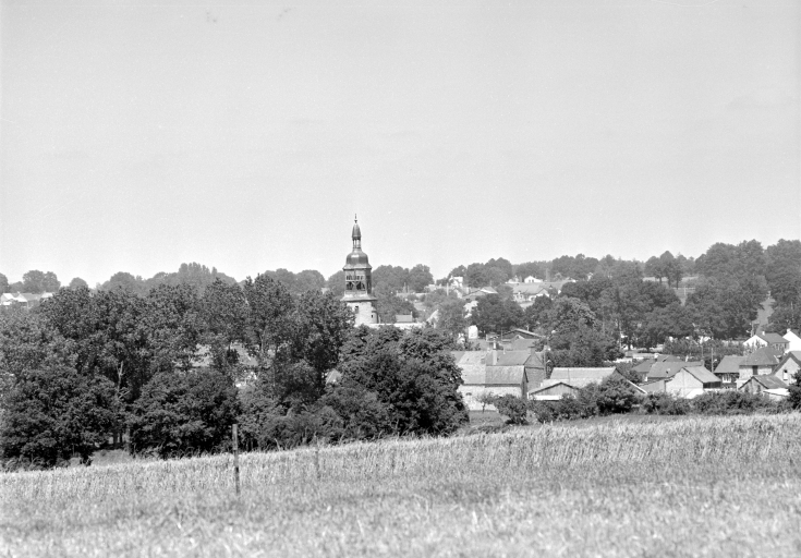 L'ancienne église comportait une nef du 14e ou du 15e siècle. Le choeur et le clocher ont été construits au 16e siècle, le bras nord édifié en 1534 fut surmonté d'un clocher en 1543. Le bras sud du transept construit en 1824 remploie une porte du 16e siècle. A la fin du 19e siècle l'église est désaffectée et transformée en mairie : les plans sont de l'architecte Henri Mellet, il détruit la nef, remonte l'ancienne façade à laquelle il ajoute un toit débordant et modifie également le clocher.