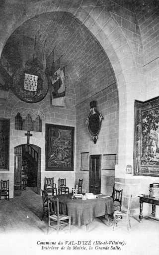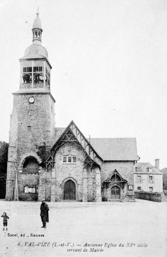 Ancienne église transformée en mairie. Toiture débordante avec des fausses fermes en façades. Le campanile est également en bois avec un remplissage de brique. Elle forme un exemple unique de ce type de réhabilitation dans le département d'Ille-et-Vilaine.