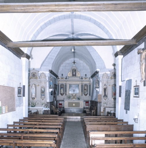 Nef romane actuellement enduite. Elle a été reprise au 16e siècle puis en 1833 (baies) . La sacristie porte la date 1737 et les armes des La-Motte-Picquet. Deux chapelles formant transept ont été ajoutées en 1838. La tour du clocher a été construite entre 1872 et 1876 par l'architecte Audrouin. Croix monumentale du 16e siècle.