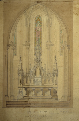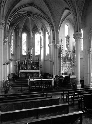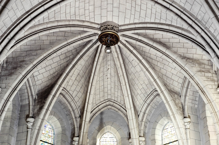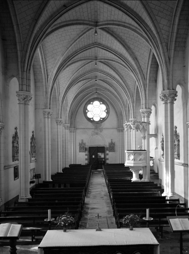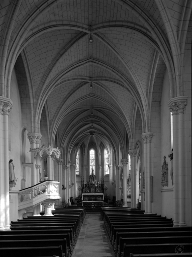 Pour cet édifice inspiré du style gothique, Arthur Regnault choisit un plan en croix latine et à nef unique. Ici, il s'attache particulièrement à dessiner des voûtes élégantes qui constituent l'un des effets décoratifs majeurs de ses créations architecturales. La blancheur du tuffeau des voûtes renforce l'intensité de la lumière que rien ne vient troubler : la chaire à prêcher présente elle aussi, dans un dialogue avec la structure architecturale, un décor monochrome à quadrilobes et à arcatures qui s'inscrit dans un registre résolument gothique.