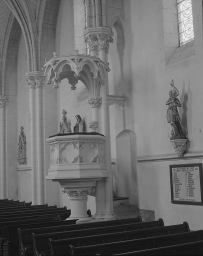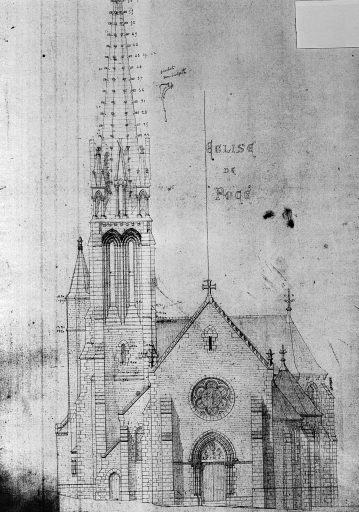 Eglise construite de 1890 à 1895 sur les plans d'Arthur Regnault. Flèche du clocher achevée en 1903 par Legeay et Gandon, entrepreneurs.