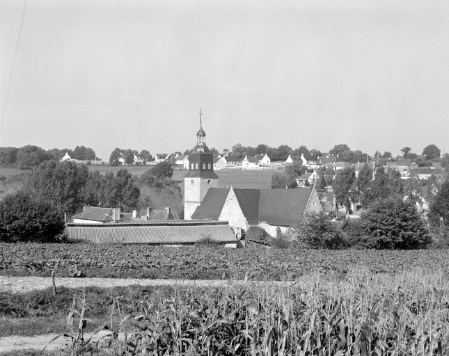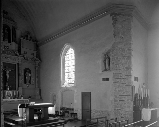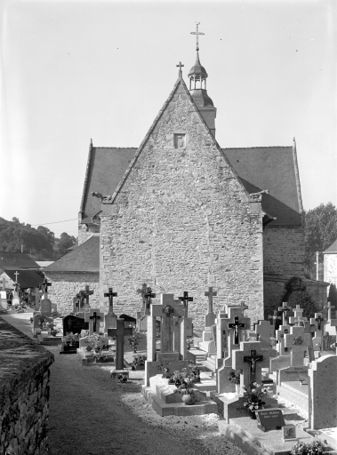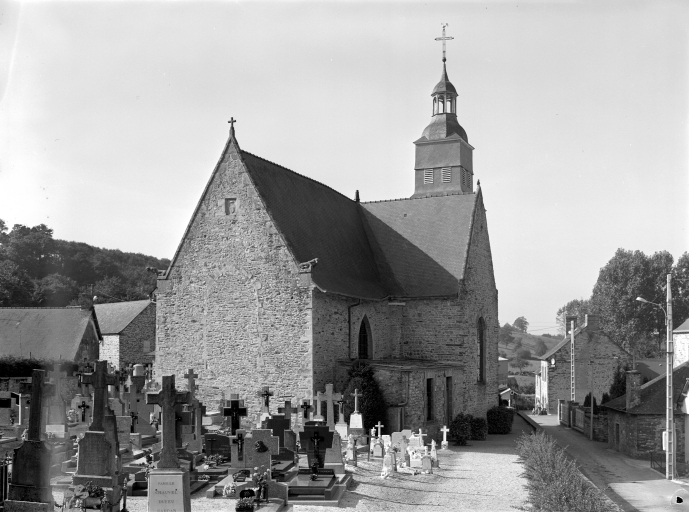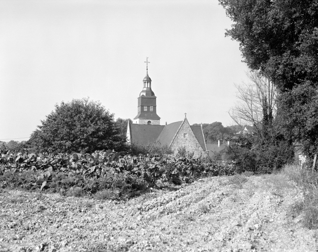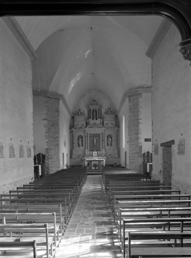 Choeur du 16e siècle. Maîtresse-vitre murée lors de la construction du retable. Nef, transept et clocher transformés en 1835 puis entièrement reconstruits à la fin du 19e siècle avec remplois de l'ancienne église. Croix monumentale du 16e siècle. Croix de mission en 1907.