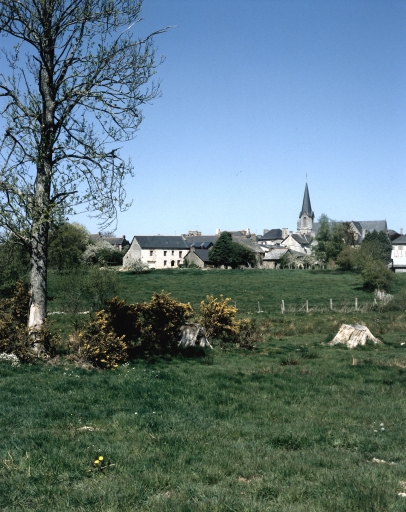 Remploi d'une porte et de deux fenêtres du 16e siècle de l'ancienne église dédiée à saint Pierre. Croix monumentale de 1541. Eglise de l'Immaculée Conception construite à partir de 1855 (date portée) par l'entrepreneur Jourdin.