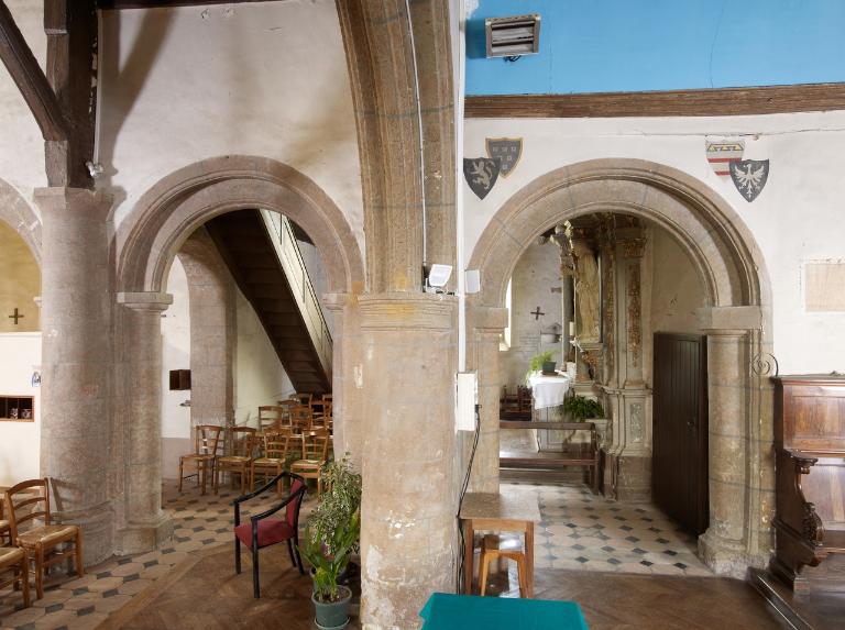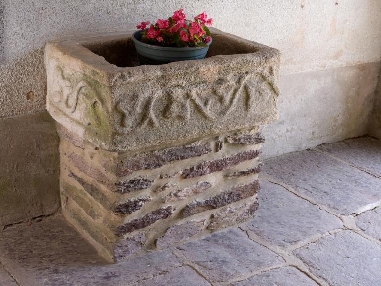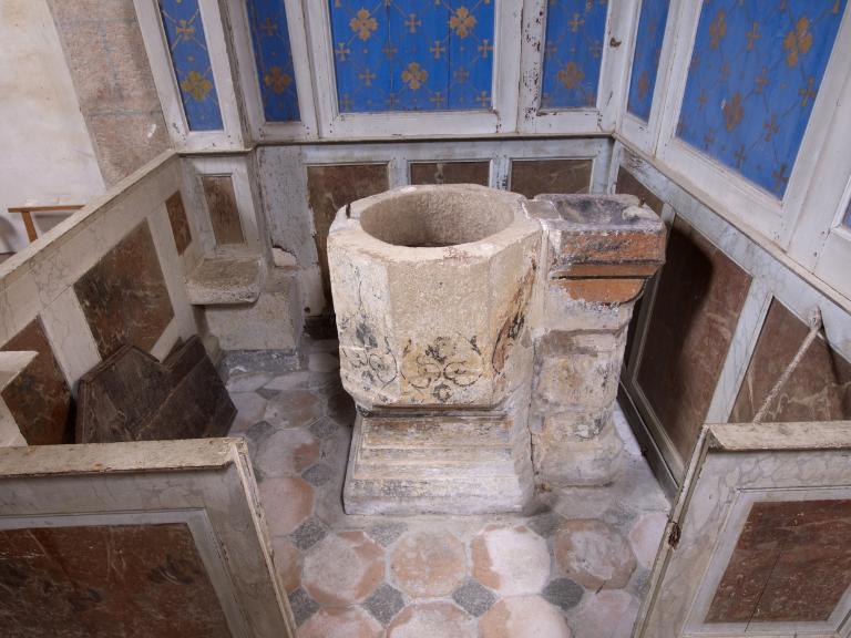 Dans le collatéral nord se trouve un baptistère en pierre avec un décor peint.