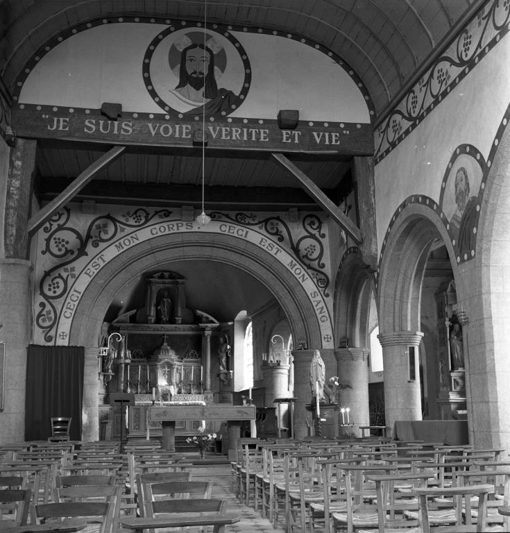 La nef portait autrefois des peintures murales, recouvertes dans les années 1970. A cette même époque, le cimetière se trouvant autour de l'église a été déplacé à l'ouest du bourg. La voute de la nef est en anse de panier recouverte de lambris en bois.