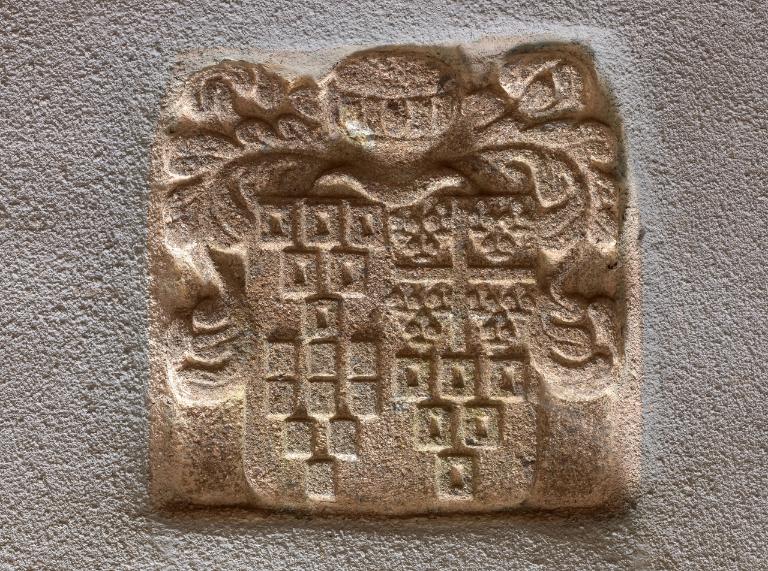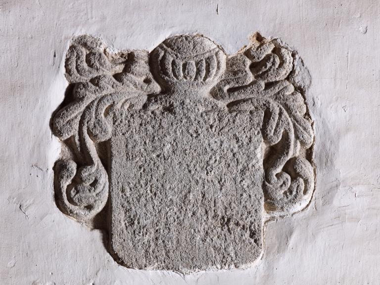 De nombreux écus peints ou gravés aux armes de la famille Huchet et de ses alliés sont visibles dans l'édifice. Les murs nord et sud de la nef conservent les écus bûchés d'une ancienne litre seigneuriale.