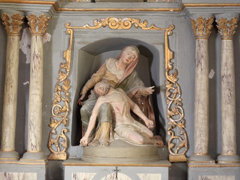 La chapelle au sud du chœur présente le retable de la Piéta visible au centre, Anne et Marie enfant en partie supérieure.