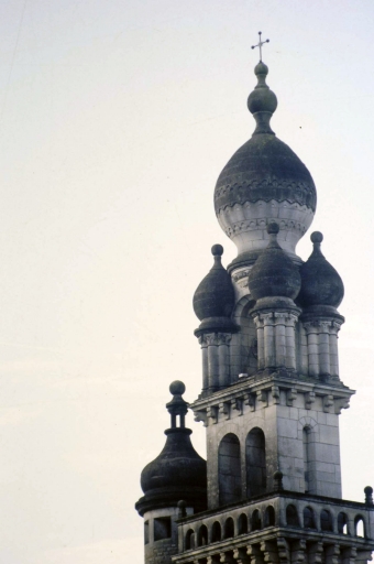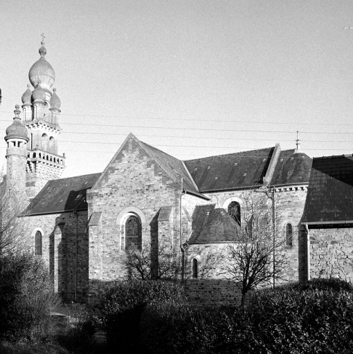 L'ancienne église se composait d'une nef avec deux chapelles irrégulières et d'un chœur reconstruit en 1828. L'église actuelle bâtie en 1896 avec un clocher à bulbe d'après les plans d'Arthur Regnault (attribution par source).