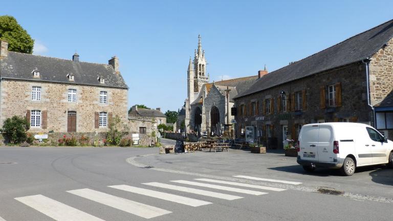 Vestiges d'un premier édifice de la première moitié du 15e siècle dont subsistent : la porte occidentale, le gros œuvre du bras sud et sa porte, à l'exception des contreforts et de la baie, le mur sud de la 1ère travée du chœur et sa porte, au nord la fenêtre de l'ancienne chapelle de Montmuran et l'ancienne porte d'accès depuis le chœur ainsi qu'une partie du bras nord (chapelle de la Vierge). A la fin du 15e siècle, sous la famille de Laval, seigneur de Montmuran, construction du porche ouest, reconstruction de la nef, édification de la chapelle Saint-Yves au sud du chœur et remaniements aux bras du transept (contreforts ajoutés) . Vestiges de vitraux du milieu du 15e siècle et importante commande de la première moitié du 16e siècle attribuable au maître Michel Bayonne. Ancien porche ossuaire, accolé à l'ouest du bras sud au début du 17e siècle, détruit après 1875. Remaniements ponctuels au 17e siècle (fenêtre du mur sud du chœur datée 1682). L'ancien clocher de charpente à l'ouest qui portait la date de 1587 a été remplacé en 1867 par un clocher pignon de style néo-gothique cornouaillais dû a l'architecte Arthur Régnault.