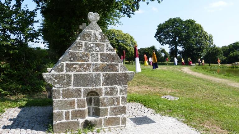 Elle est située à l’est du bourg à proximité de l’étang, le long de la route vers Saint-Brieuc des Iffs. La fontaine Saint Fiacre entièrement en pierre taillée, surmontée d’une croix de granite passe pour être la seule fontaine close du département. Dès le XIIe siècle, l’eau de cette source conduite par une canalisation en poterie alimentait la fontaine du château de Montmuran. La légende raconte que Saint Fiacre, patron des jardiniers, ayant soif alors qu’il passait par là, a frappé le sol de son bâton, faisant jaillir une source qui ne tarit pratiquement jamais. Cette eau miraculeuse, invoquée en procession pour faire venir la pluie en période de sécheresse, était aussi dotée, selon la tradition orale, de multiples vertus : maux de ventre, grossesse, allaitement... Mais depuis les années 1980, la pollution ne l’a pas épargnée et son eau est officiellement non-potable.