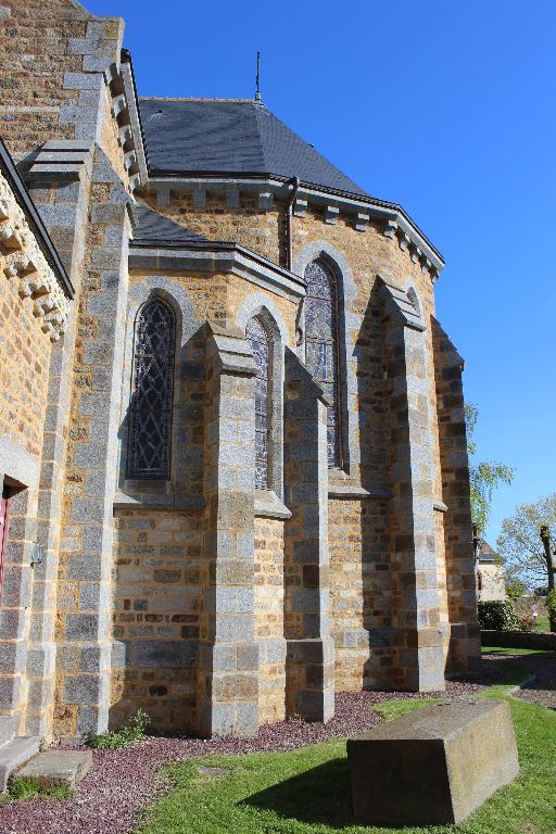 Le chevet de l'église suit le même rythme que la nef avec une alternance de baies brisées et contreforts.