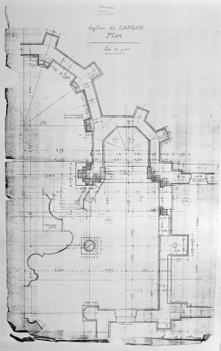 L'église de Langan fut construite à la fin du 19e siècle par l'architecte rennais Arthur Regnault à la place de l'ancienne église. La construction a commencé par l'élévation de la nef et du clocher entre 1878 et 1880. Ce clocher s'était partiellement écroulé en 1876. C'est seulement entre 1894 et 1896 que le transept, le chœur et la sacristie ont été édifiés. Cette construction en deux campagnes s'explique par des raisons financières mais n'empêche pas d'avoir un édifice relativement original.