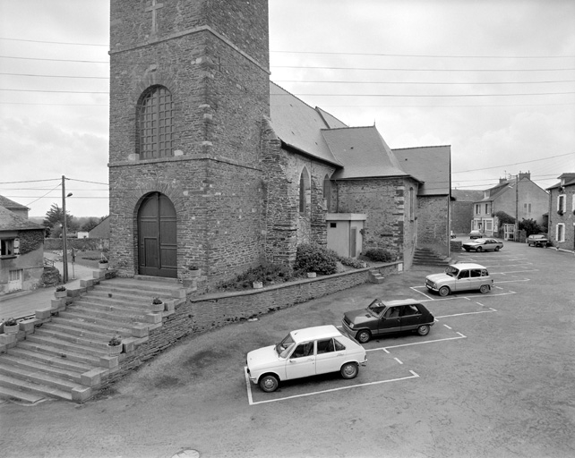 Nef et bras sud limite du 15e et du 16e siècle. Choeur, bras nord, chapelles nord et sud du 17e siècle. Sacristie du début du 2e quart 19e siècle : date 1825 portée sur linteau avec inscription : AUGUIN. Clocher-porche daté 1836. Baies du bras nord et de la chapelle nord refaites au 4e quart du 19e siècle.