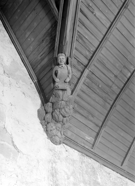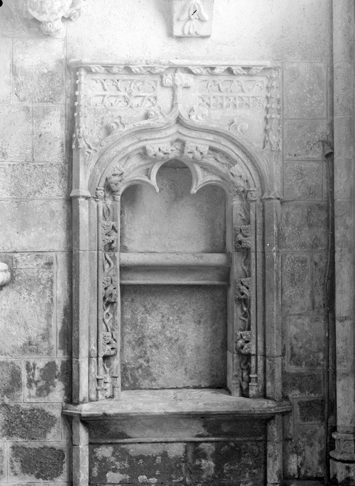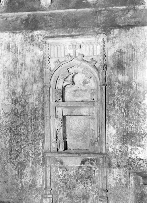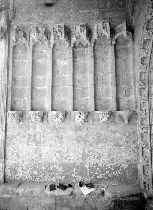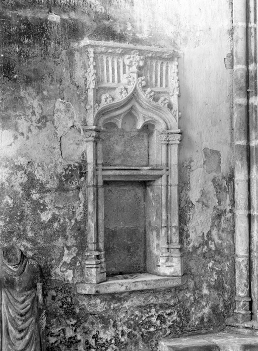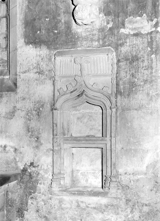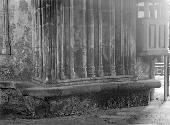 D´autre part, depuis la restauration du XIXe siècle, sa tribune ne dispose plus d´escalier d´accès ; toutefois, les anciens relevés représentent, appuyée contre le mur ouest du bras sud, une volée droite très simple.