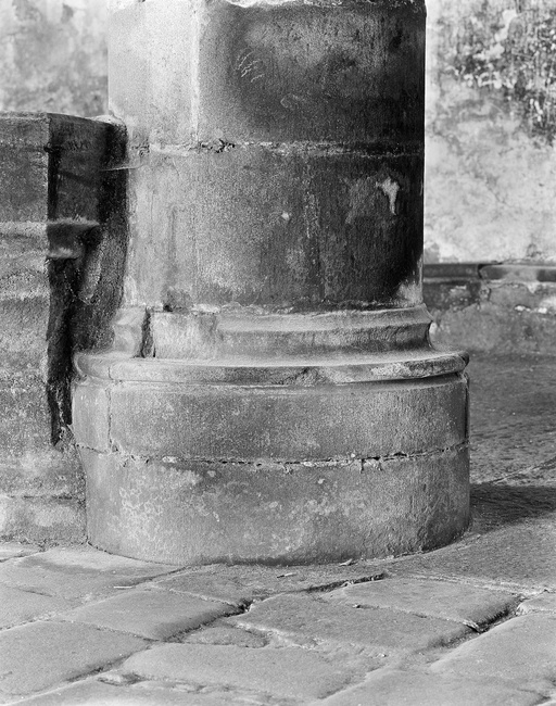 Dans les bases de la première et de la deuxième pile du bas-côté nord, des saignées qui correspondent à une ancienne clôture en bois indiquent un aménagement qui répondait à de semblables exigences.