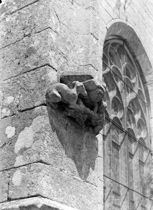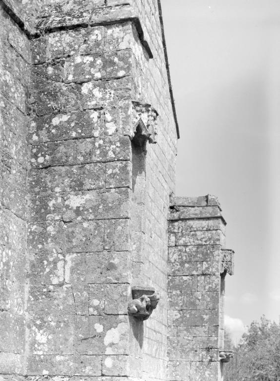 La composition dissymétrique du chevet semble relever d´un changement de parti : une reprise près du contrefort nord, la cassure de l´angle du pignon ainsi qu´une différence dans le style des crochets qui ornent les rampants, dénotent un ajout postérieur, peut-être en cours de chantier qui s´inscrit dans la même recherche esthétique que celle de la façade occidentale. Sur l´arête de l´angle nord-est de l´appentis dépourvu de contrefort, une niche à dais surmontée d´un pinacle, contribue à l´harmonisation tout en attirant le regard. À l´opposé, à l´angle sud-est, un détail révèle la qualité de cette architecture : au sommet de l´angle formé par le mur du chœur et le chevet, l'arête du mur, au lieu de se fondre dans le glacis des têtes de contreforts, repose en surplomb sur un culot sculpté de feuillages. Au-dessus de la maîtresse-vitre, l´axe du pignon est marqué par l´importante composition des armes ducales qui occupe toute la hauteur depuis la pointe de la baie jusqu´au sommet du pignon et dont la qualité est encore perceptible, malgré les méfaits de l´érosion. Le fort relief de l´ensemble, les attitudes gracieuses du couple de sauvages qui tiennent l´écu, le lion du cimier traité de trois quarts et la bannière ducale légèrement penchée et flottant au vent confèrent à cette grande composition héraldique une dimension plastique qui affirme de façon brillante un message hautement politique.