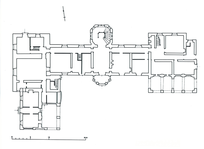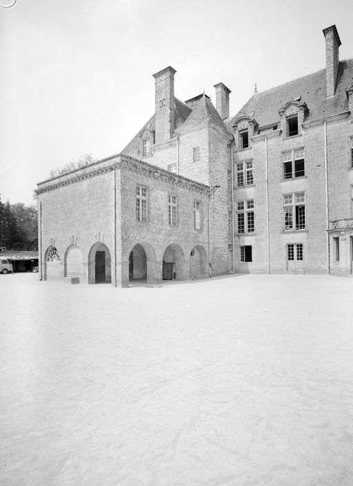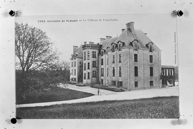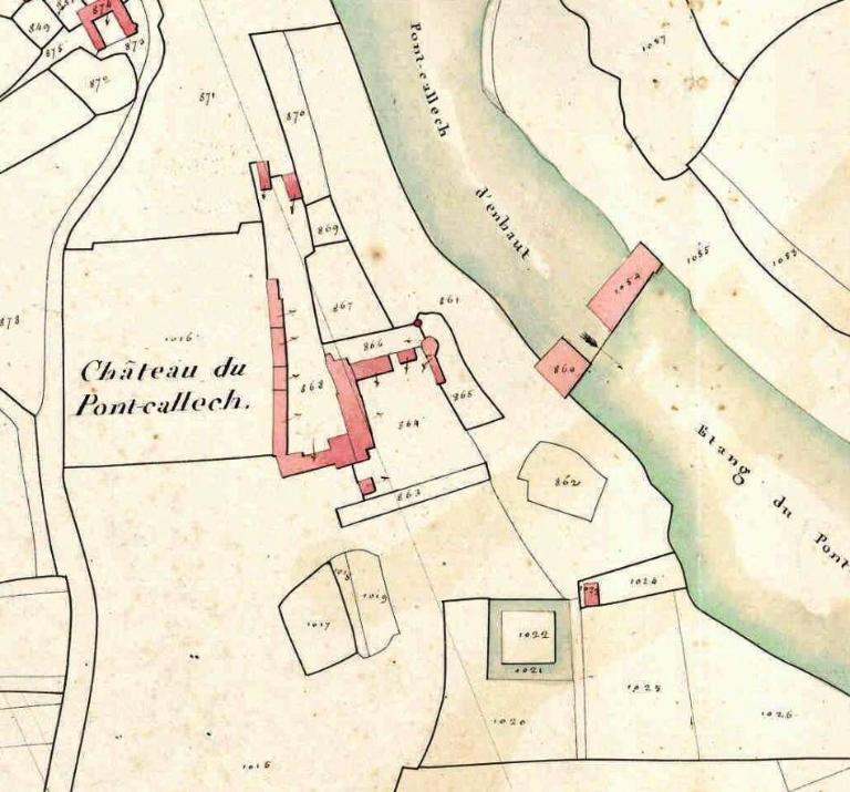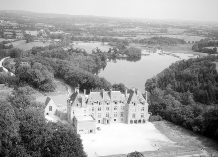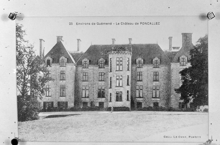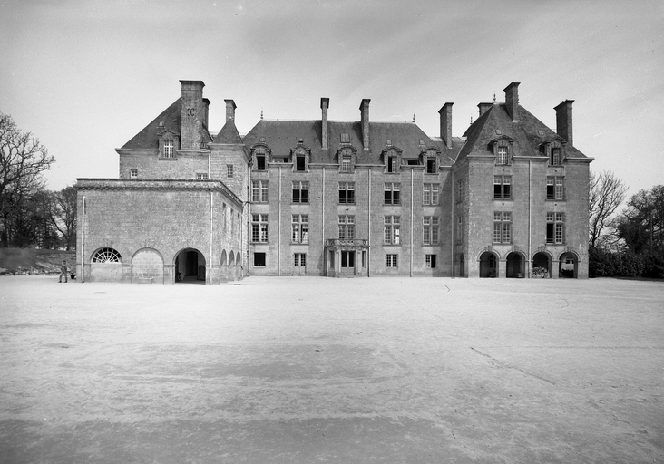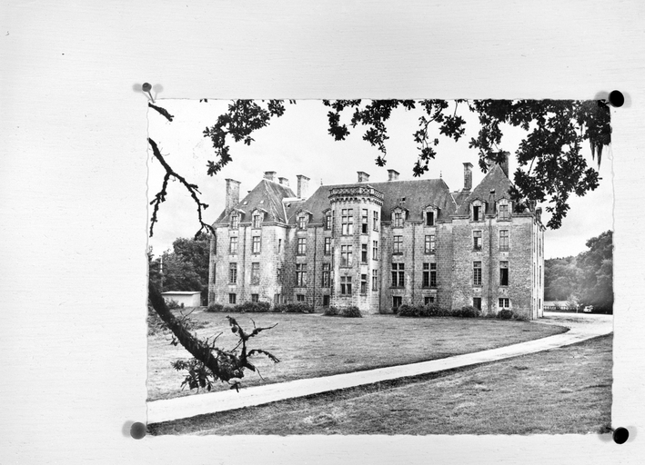 Le château actuel, l'aile occidentale exceptée, est une reconstruction de 1882, due au fils du Comte de Brissac qui avait racheté le château en 1833. Deux constructions antérieures au moins se sont succédées sur une ancienne place forte, siège d'une importance seigneurie, et partiellement détruite par les troupes de Mercoeur en 1591. Si cette enceinte a subsisté jusqu'à une date avancée, il est généralement admis que le logis a été reconstruit au 17e siècle, comme en témoigne le pavillon ouest. Cet important ensemble a été presque entièremenet brûlé en 1796. Au cours des travaux du 19e siècle, la majeure partie du pavillon occidental, flanqué de la tourelle carrée au sud-est, a été conservée, les parties hautes, lucarnes comprises, ont été refaites. En même temps, un bâtiment cubique à deux niveaux a été ajouté en avant du pavillon ouest. Vendu autour de 1956 à une communauté de Dominicaines qui y dirige un orphelinat, l'ensemble a été augmenté en 1966 par une chapelle et un cloître, la chapelle remployant des matériaux de la chapelle Sainte-Anne de Pluméliau. (E. Laurenceau)